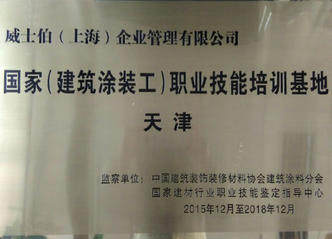 市场环境的升级加速了涂装工培训中心的成立,经过全方面严格评定,威士伯(上海)企业管理有限公司符合《建筑涂装工》国家职业技能标准和《建筑涂料工培训基地管理办法》设立培训基地的要求,被授予首批国家(建筑涂装工)职业技能培训基地(天津)。
